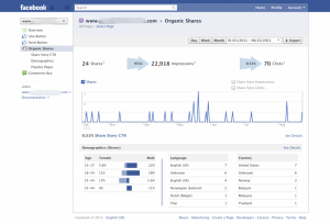 Combien de fois votre contenu du site est partagé sur Facebook ? L’onglet Partages Organiques est l’endroit pour vous. Cette section de Facebook Insights enregistre le nombre total de fois où un lien vers votre domaine a été partagée à travers un message d’état ou un message sur le mur sur Facebook. Il montrera également combien d’impressions (ou vues) au poste reçues et le nombre de fois que le lien a été effectivement cliqué dessus.